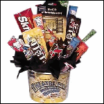The Movie Night Bouquet is the perfect gift for someone stuck at home or away from home. This arrangement (small shown in picture) comes in a Blockbuster Microwave Pop Corn Container, includes a $5.00 Movie Card Good at any Blockbuster Movie Rental, and twenty of your favorite movie time treats. The Extra Movie Night Bouquet comes with a total of thirty movie time treats. The Deluxe Movie Night Bouquet comes with $10.00 in Blockbuster Gift Cards and almost forty movie time treats.