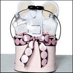The soothing essence of coconut oil infuses this design. Our stylish pink pail is filled with Coconut Milk Bath, Body Lotion, and Bath Salts. As a further enhancement we included a pair of Fuzzy Loofah Slippers